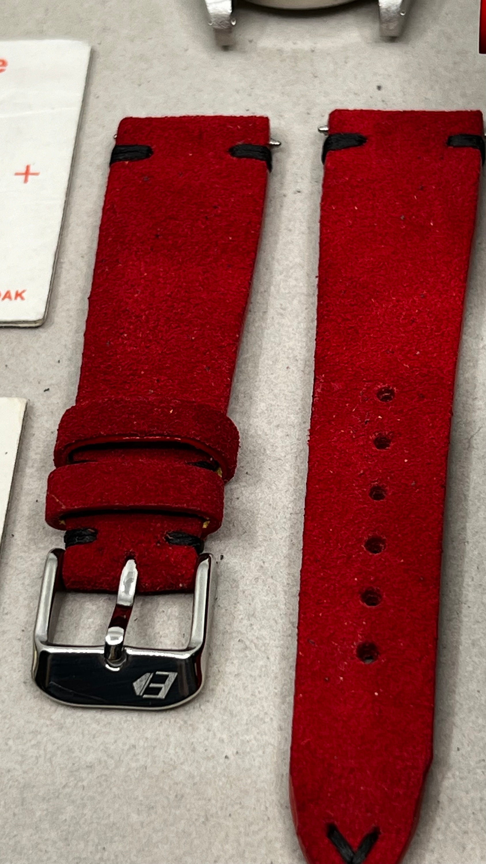Red Suede Leather Watch Strap Band Handmade - Leather Watch Band, size 20mm, Made to Order, Valentines Day Gift