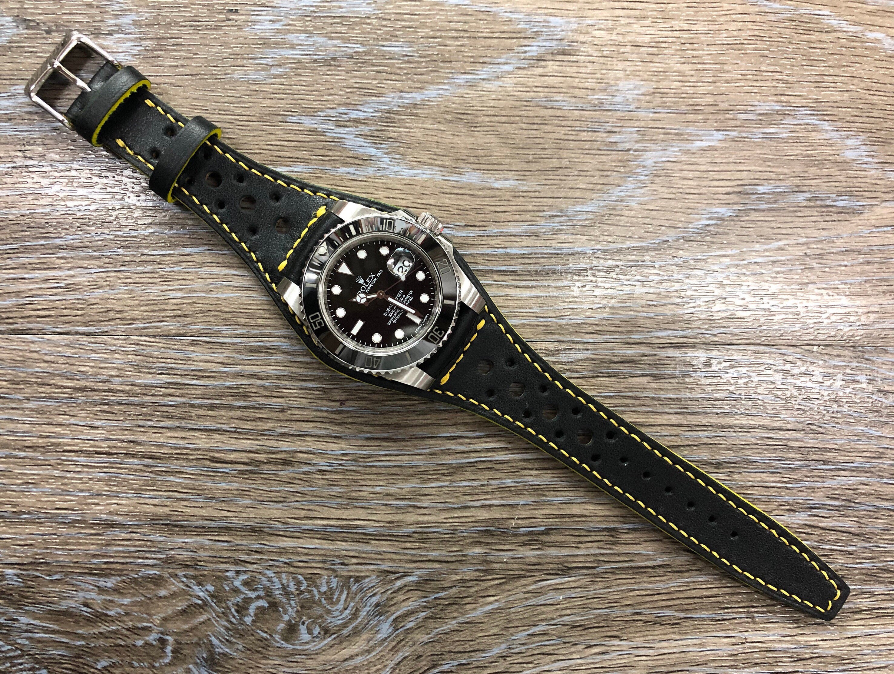 We offer Premium Full bund strap / Racing Watch Band, Rally Watch Strap / Real leather handmade Cuff band for 20mm lug width watch. Free shipping worldwide!